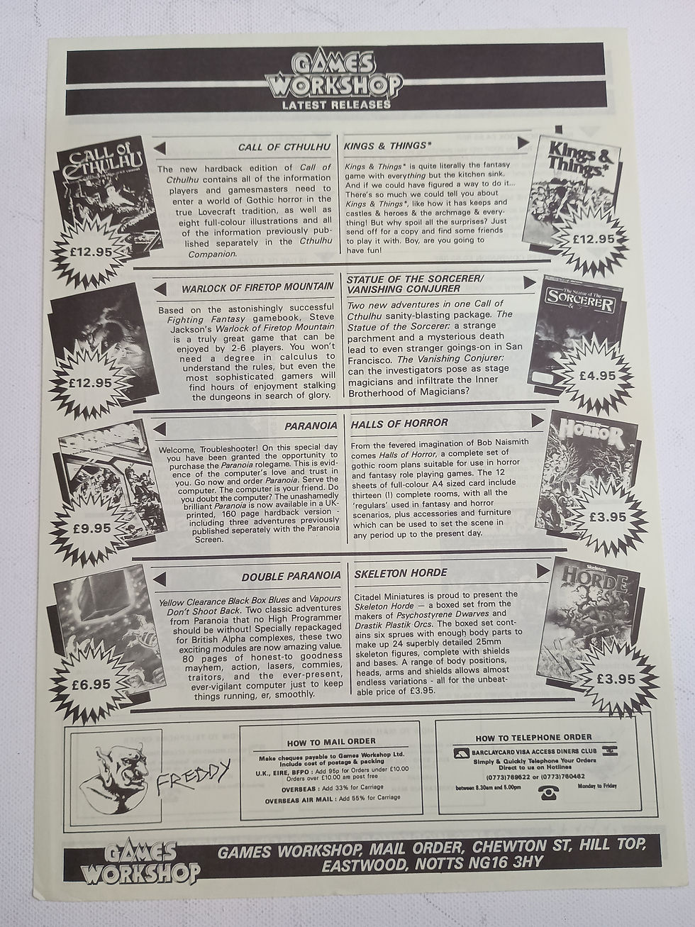 1986 Games Workshop Mail Order Latest Releases Flyer